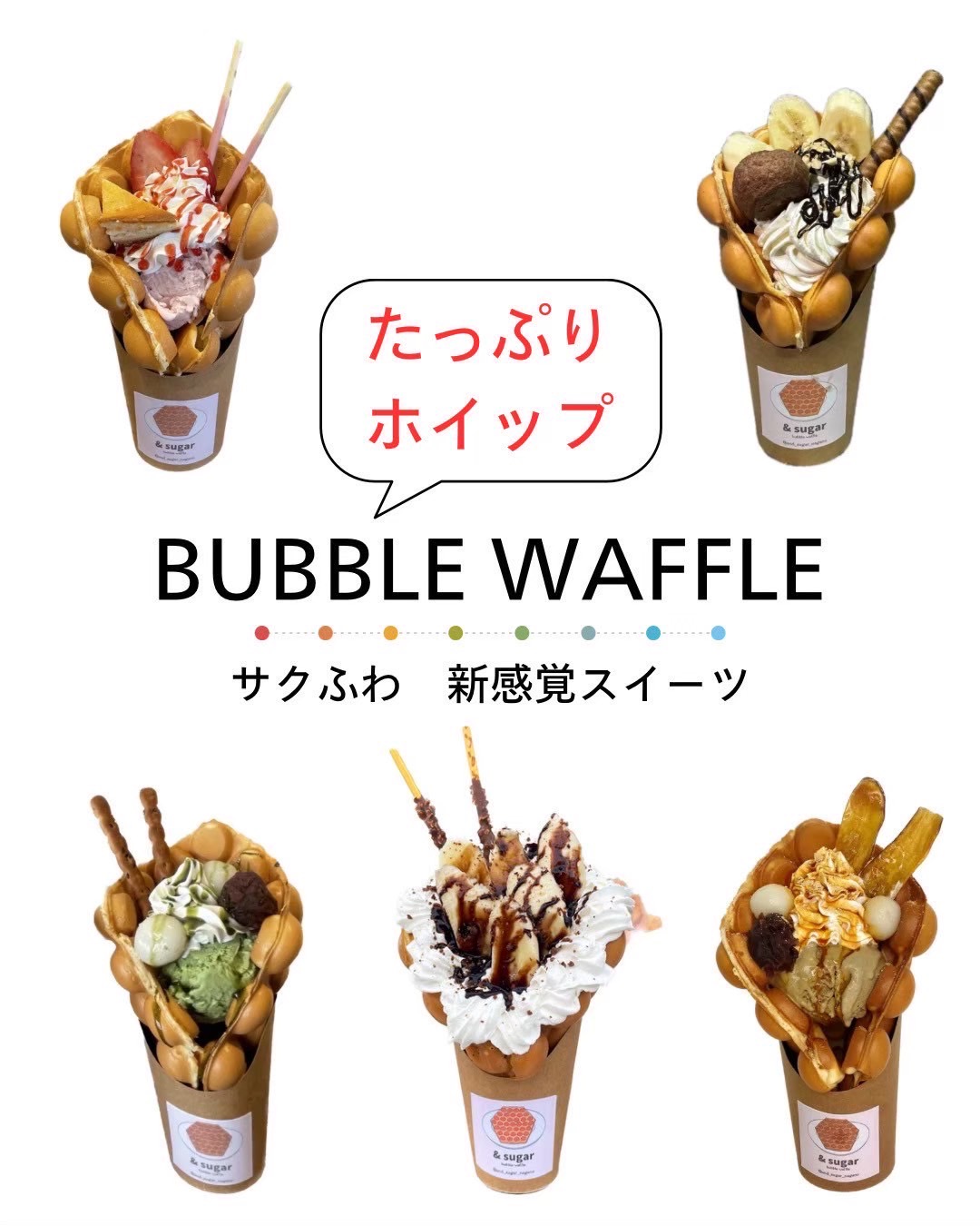 バブルワッフル専門店『&suger』が初出店! ・バブルワッフル |