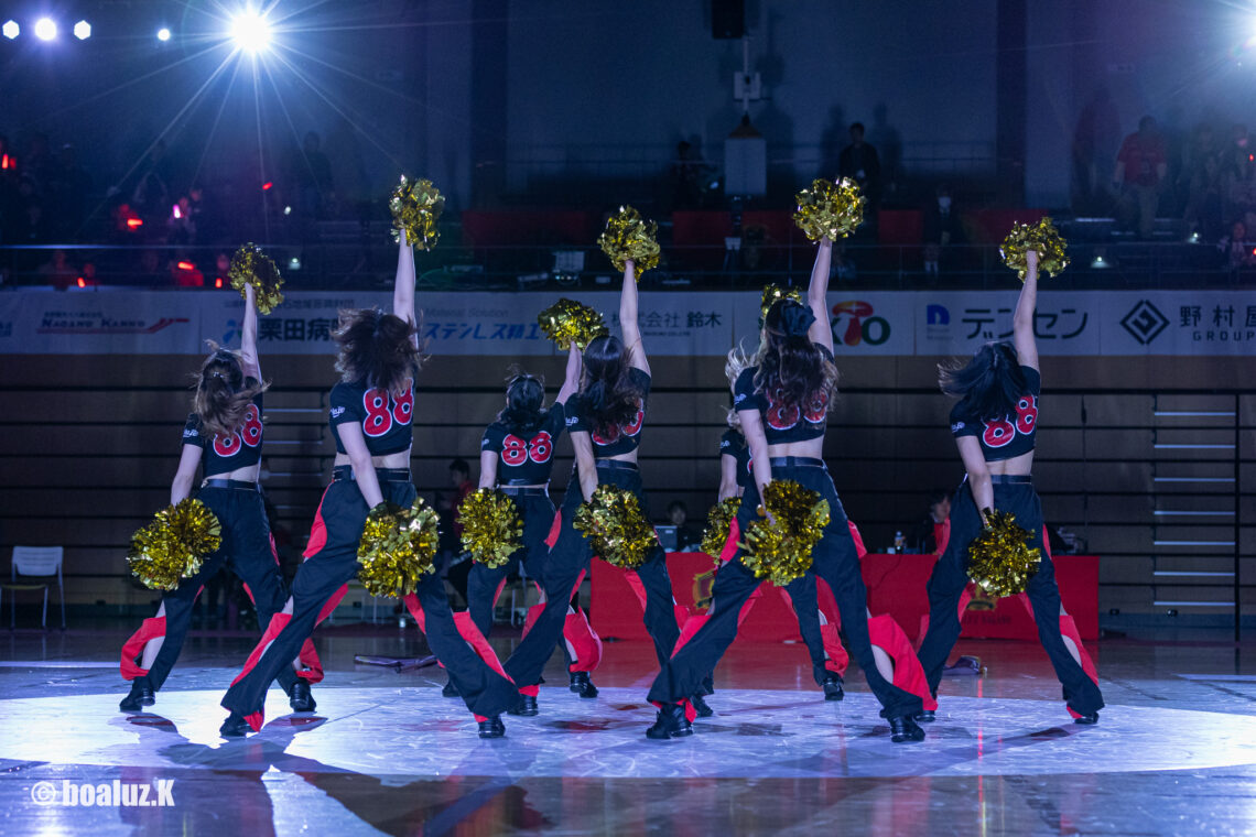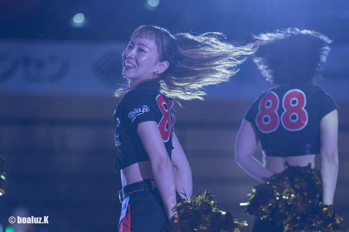 アリーナを華やかなに熱くするオープニングとハーフタイムパフォーマンス!『Ablaze(アブレイズ)』が登場! 暗転演出と、音と光がシンクロする音響連動ペンライトで、 試合前からボルテージ最高潮。 ハーフタイムパフォーマンスでは、応援ダンスで一体感! ■パフォーマンス出演時間 |